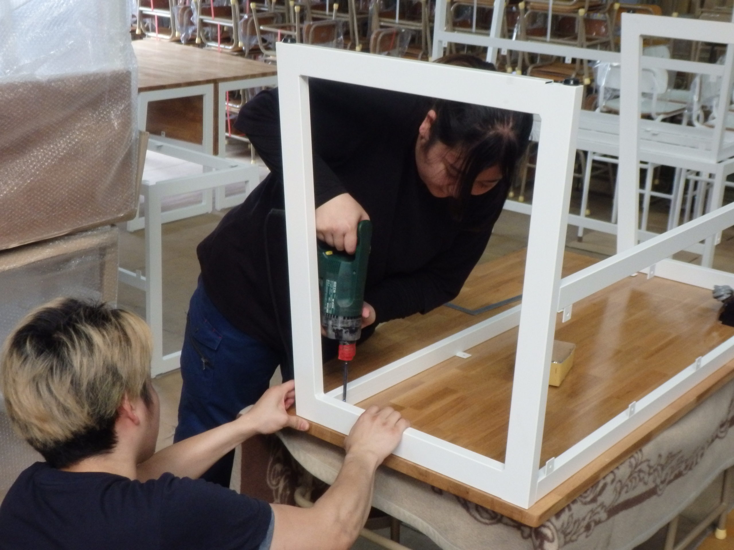学校用机・椅子の専業メーカーである弊社としましては、初めて作るものばかりでした。